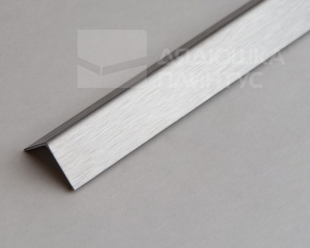 Сатинированный наружный угол из нержавеющей стали от компании Лука.Длина профиля 2,7 м, ширина 10х10 мм.
