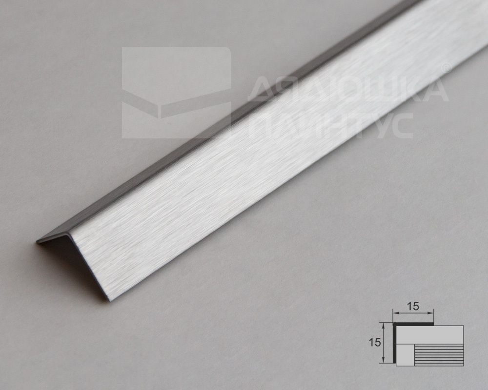 Сатинированный наружный угол из нержавеющей стали от компании Лука.Длина профиля 2,7 м, ширина 15х15 мм.