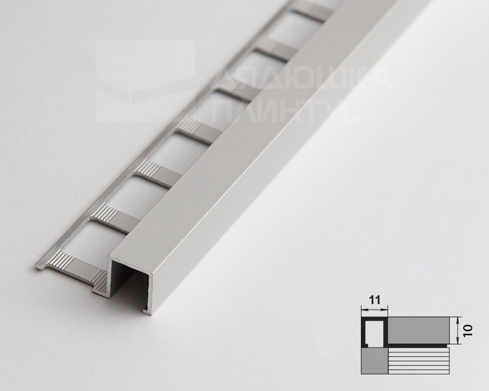 Окантовочный П-образный профиль из алюминия от бренда Лука.Длина профиля 2,7 м, высота 10 мм.Предназначен для оформления внешний и внешних углов, скрытия неровностей плитки и защиты плитки от сколов и повреждений. Придаст красивый и законченный вид дизайну помещения.