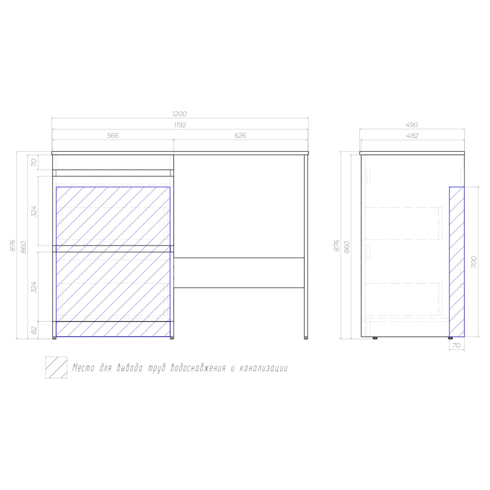 Тумба Vigo Urban 600-0-2 1200 под стпр/м. с ум. Urban