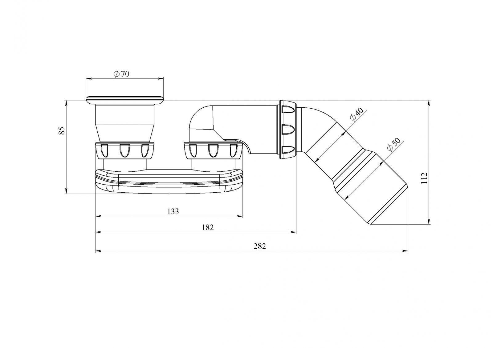 G22 CИФОН ДЛЯ ДУШЕВОГО ПОДДОНА С ПРИКРУЧИВАЮЩИМСЯ ВЫПУСКОМ 1 1/2 И ГИБКИМ СОЕДИНЕНИЕМ д.40х40/50 40