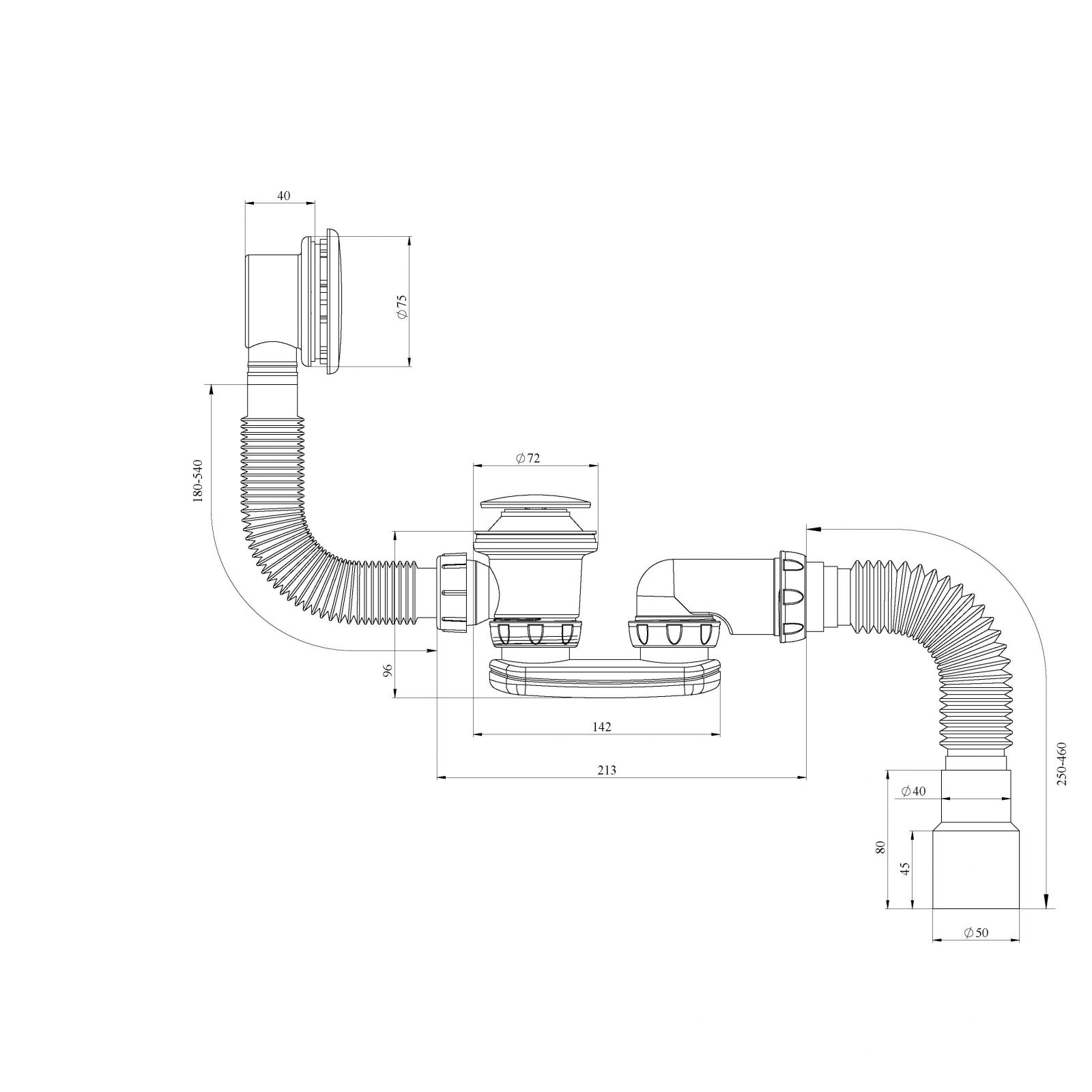 S122E, сифон авт. д/ванны Easyopen 40х40/50 400мм
