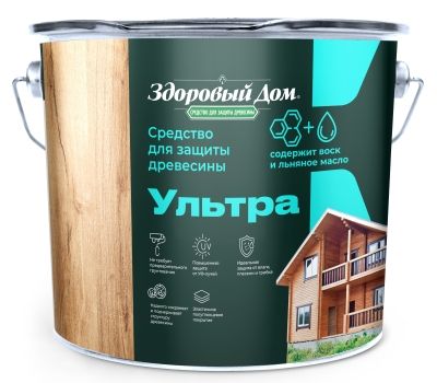Преимущества: Деревозащитное средство Здоровый Дом Ультра белый 9 л для внутренних работ для наружных работ