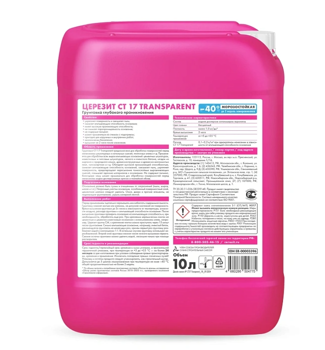 Грунтовка Церезит Transparent СТ-17 Зима 10л. нет скидок